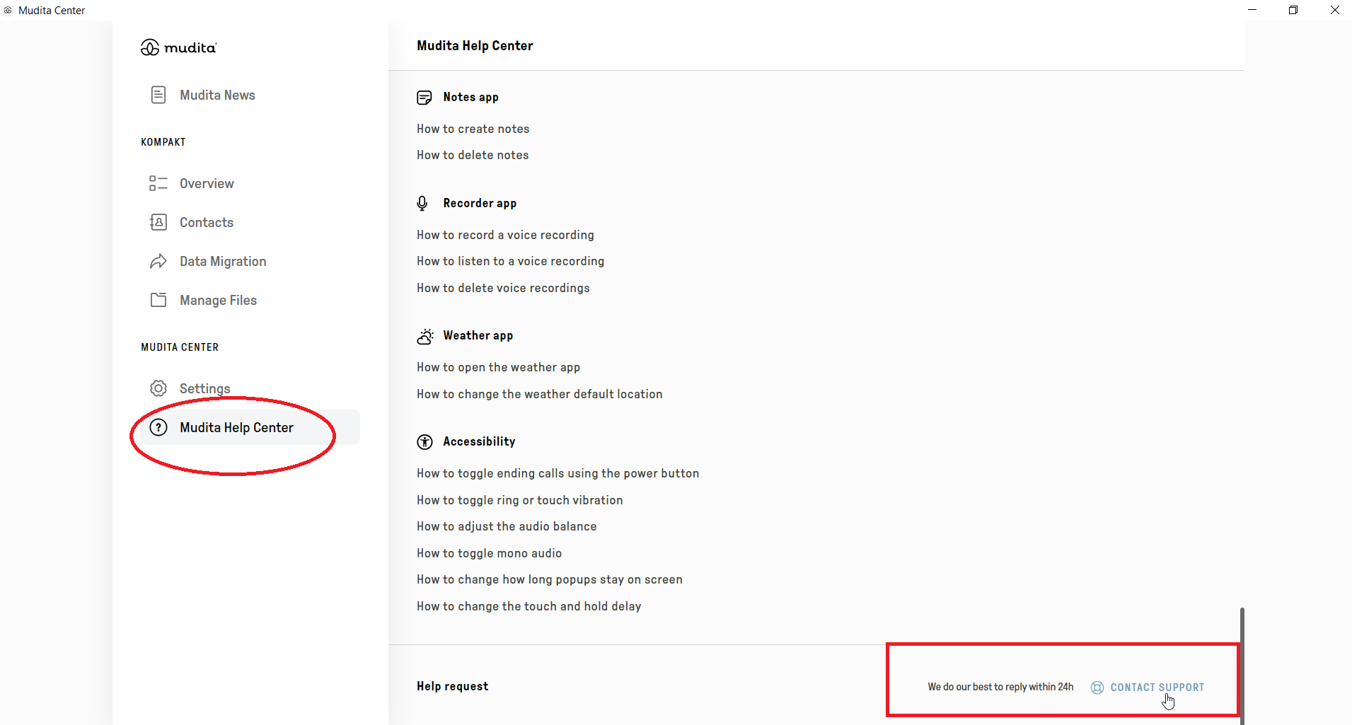 - Click on Mudita Help Center