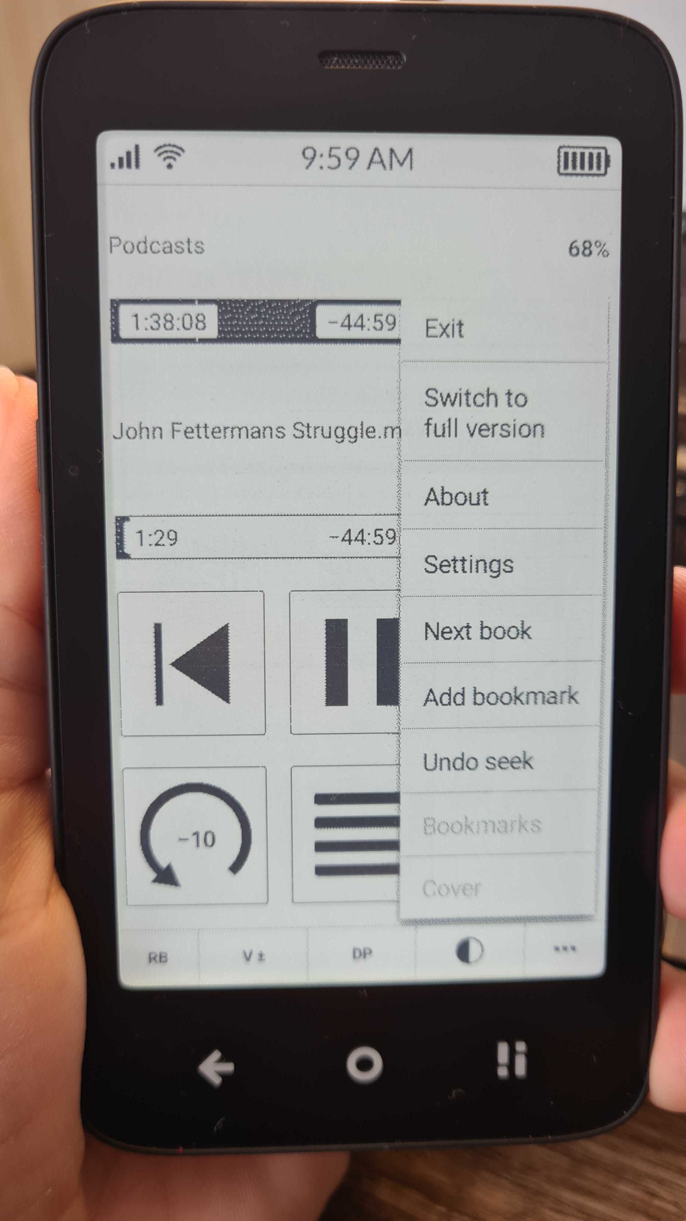 @kirkmahoneyphd Someone on this forum suggested Simple AudioBookPlayer- (Simple ADB Free ) Itās actually B&W in its original form, so on E Ink it actually looks really good (I didnāt like the way AUDIBLE looked).