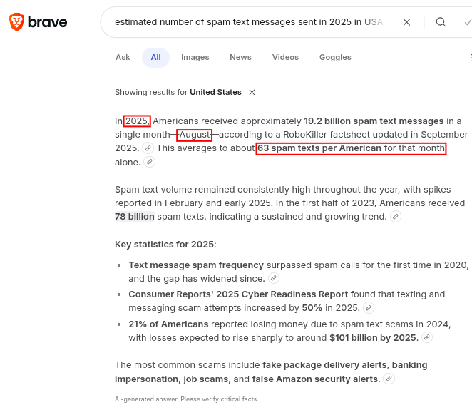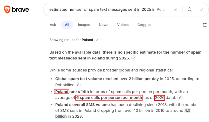 Quick research with the Brave browser told me that American cellphone owners get an estimated TEN TIMES as much text-message spam as Polish cellphone owners get in call spam!
