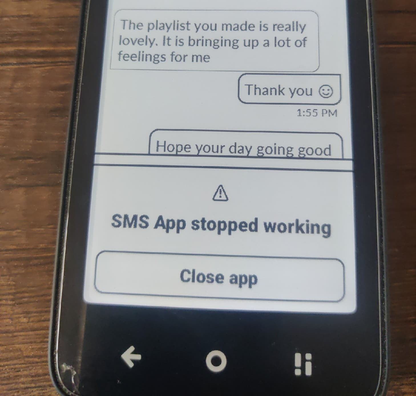 Hello, I have a big issue, the SMS app no longer lets me open texting threads. Instead, it prompts me to force close the app, and this happens every time I try to text someone. It also wonât let me delete existing ones because I canât get the thread to stay open without it asking me to force close.