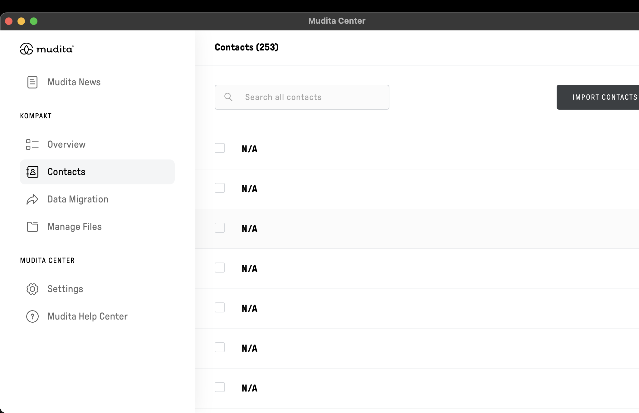 Mudita Center does allow selecting and deleting all contacts at once, although it might not be obvious at first glance. Once you select one or more contacts, you can then select all by clicking on the checkbox next to “x contacts selected” in the top part of the screen. I hope that helps you organize your contacts without too much effort. THIS PARTIALLY WORKED FOR ME. ALL OF THE CONTACTS W/ NAMES DELETED BUT THERE ARE STILL 262 PHANTOM “N/A” CONTACTS APPEARING AND REAPPEARING AFTER REPEATED BULK DELETION. I EMAILED MUDITA SUPPORT AND WILL POST AN UPDATE IF/WHEN I LEARN THE SOLUTION