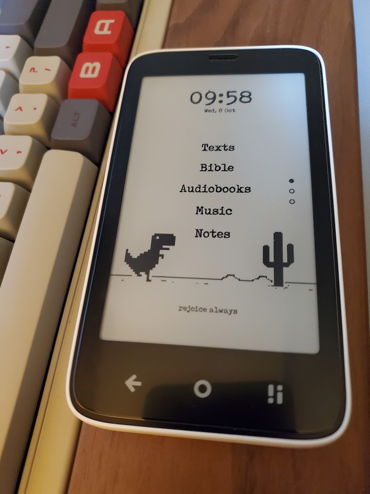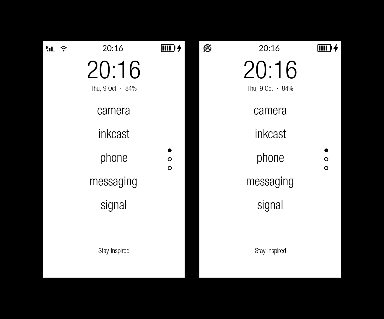Default AOSP android status bar is transparent, and it looks good with wallpaper in both themes. But Mudita has added the white bar and it’s not something that I can change via inkOS.