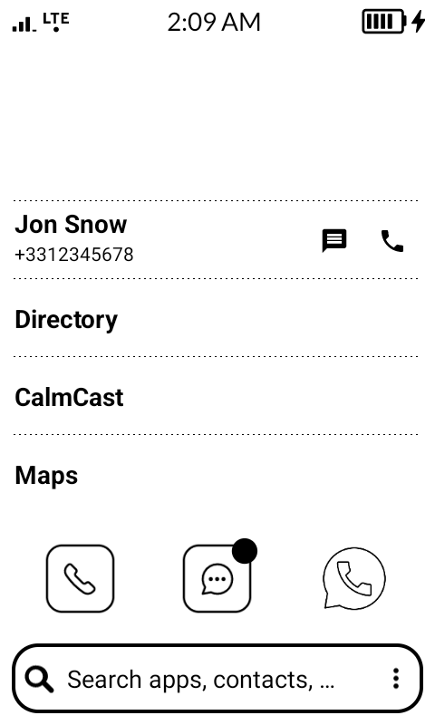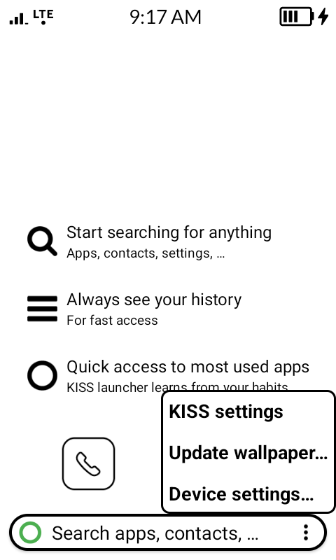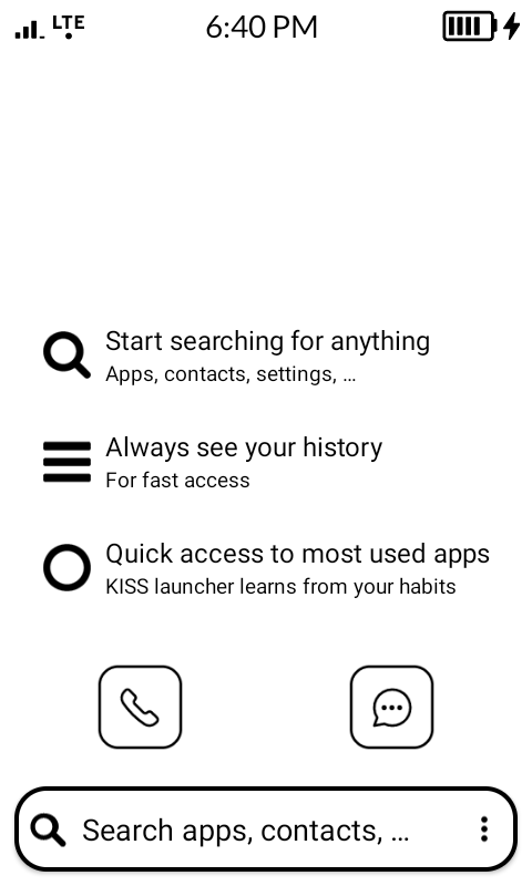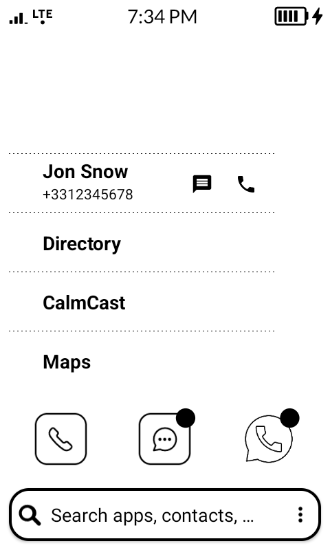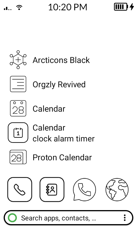 Screen after adding ‘whatsapp’ to favorites (with Articons Black icon pack) and after making some research so the history has some entries. Also enabled notification dot feature (black dot):