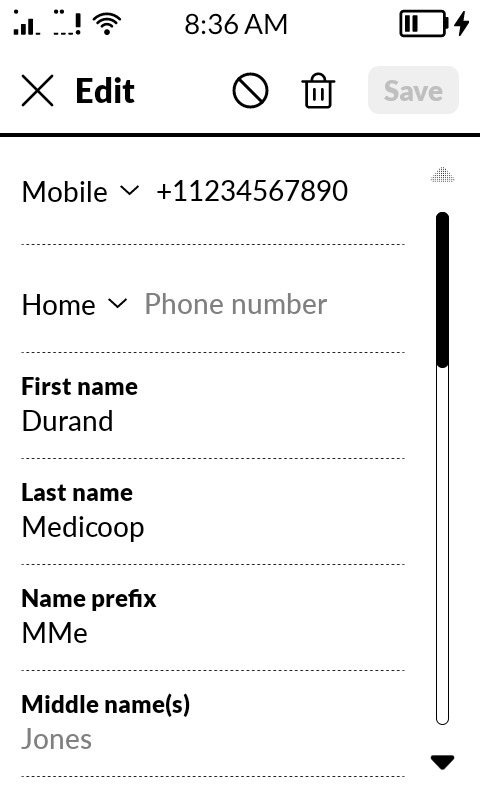 I have just added a new contact with just a phone number (Mme xxx xxx)