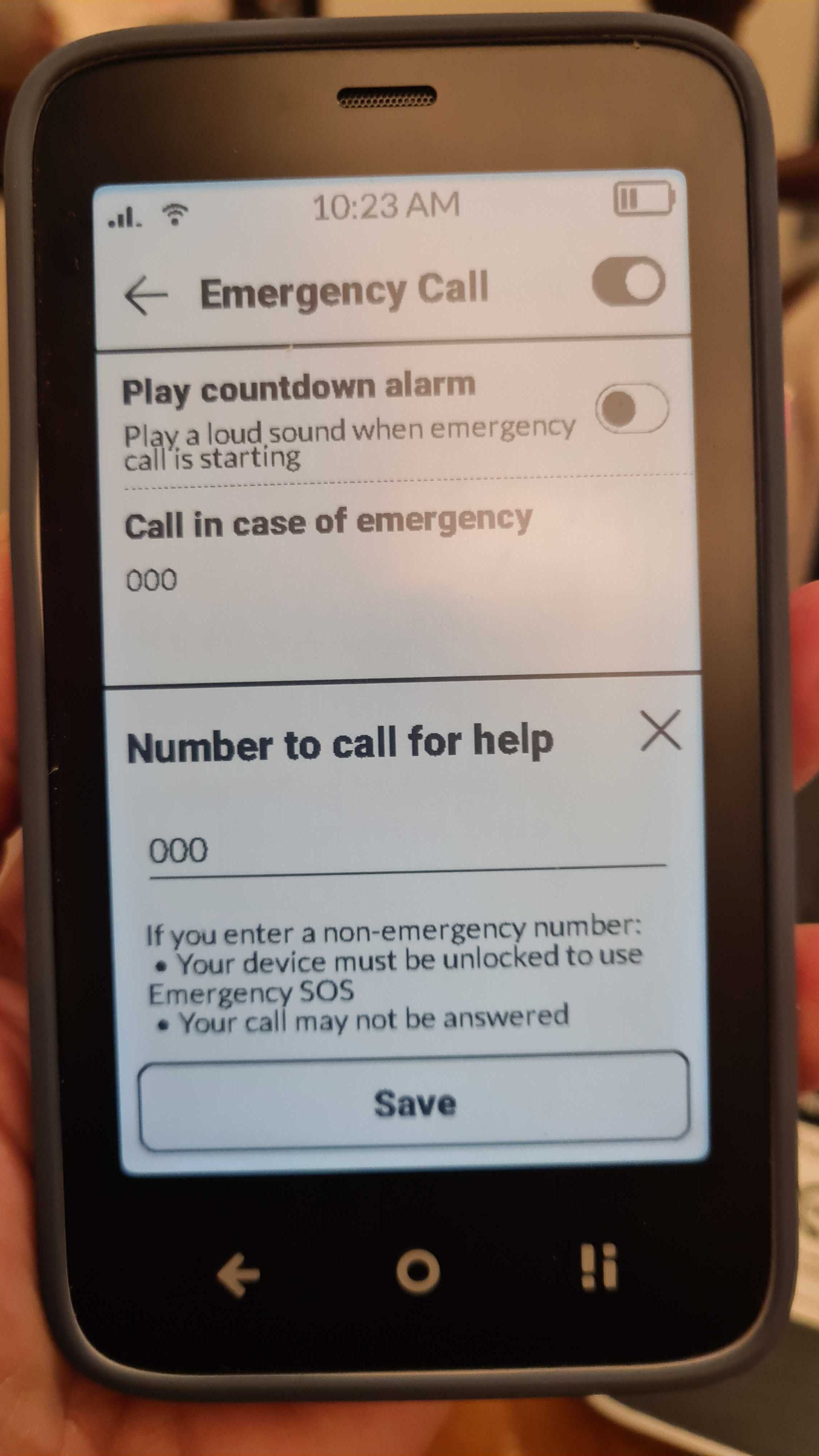Mudita Kompakt does not hardcode a European emergency number. You can set 000 directly in the Emergency Call settings. Thatâs what I did.