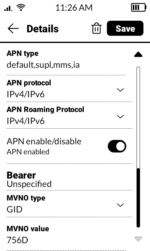 Hi all, I’m having similar issues to what others have described. I’ve been having issues with not receiving text messages from people (not only in group messages, but also individual texts), and I feel like it’s gotten worse since I updated to 1.3. I’ve tried sideloading both Fossify and Quik, and neither have resolved this issue. I also disabled RCS and iMessage when I first switched phones, and my APN settings match what my provider (Mint) has on their website. I’ve also stopped using offline+ mode to see if that would help but it hasn’t. I really don’t want to abandon this phone, but I’m getting close to the end of my rope here. I’ve screenshotted some settings below to see if @urszula or anyone else has suggestions of anything else I could try. Thanks in advance!