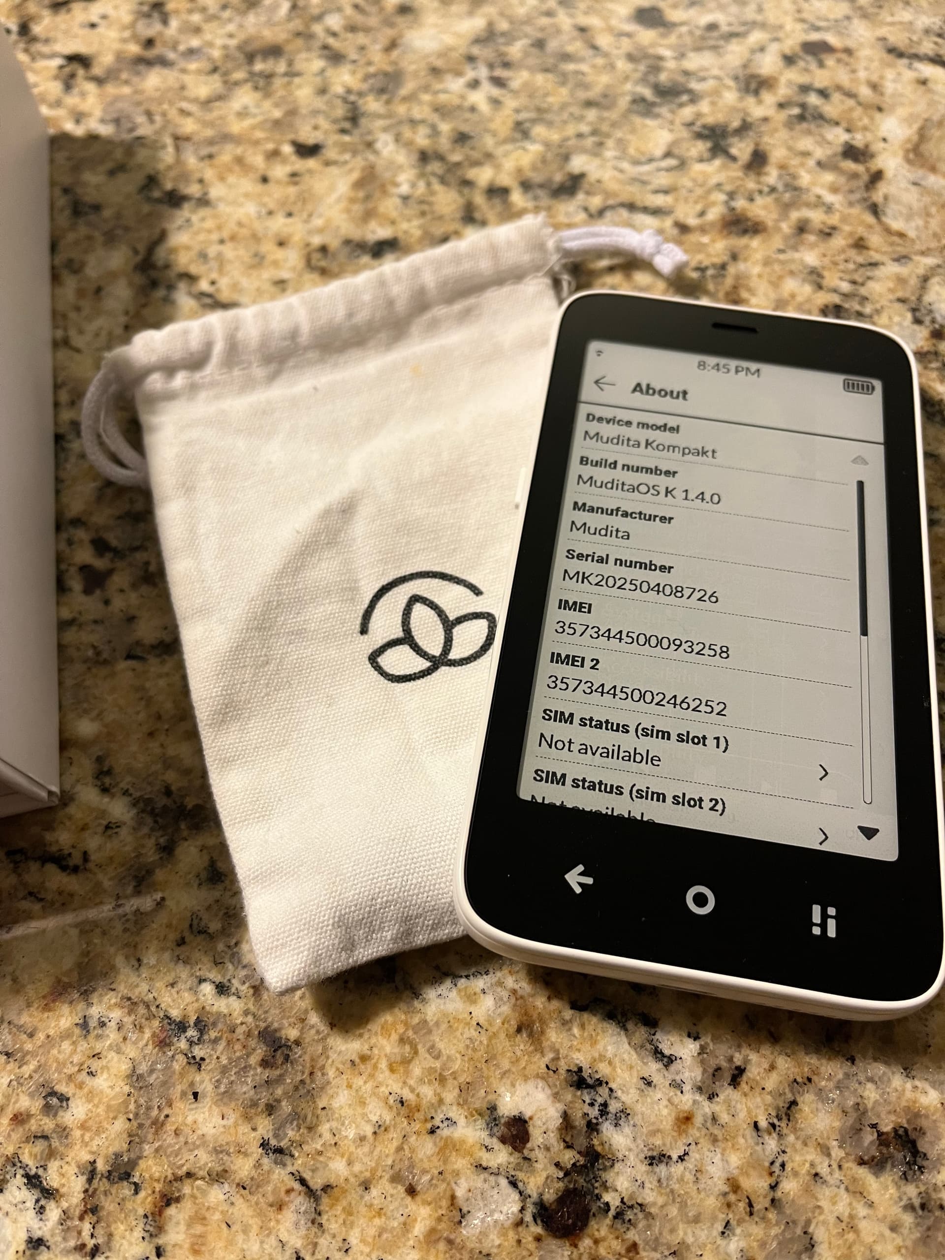 I’m parting ways with my Mudita Kompakt (white, North America version) after just four months of loving it. It’s a wonderful device, but given my work and family schedule and commitments, I’m unable to integrate it fully and have to rely on another phone, and managing two phones is impossible.