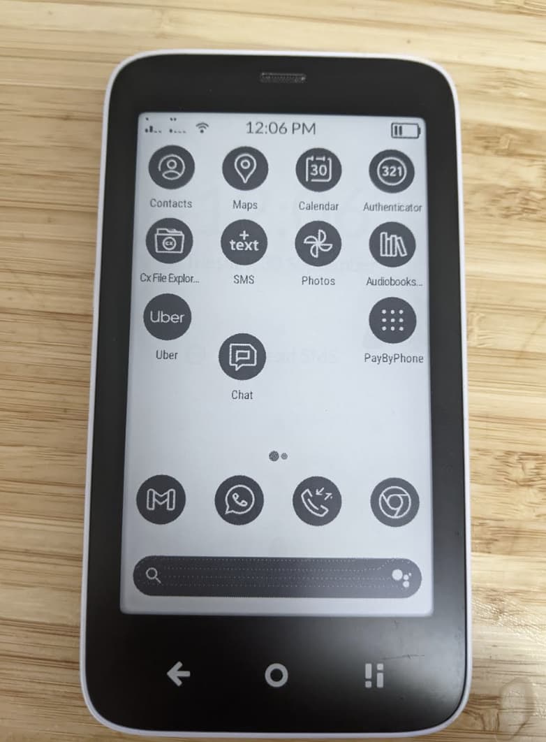 The apps on my homepage are: google maps, chrome, Authenticator Pro, Mudita contacts, Mudita phone, Mudita sms, Google Calendar, Audiobookshelf, PaybyPhone, Google Photos, Google Chat, Whatsapp, Uber, CX file Explorer.