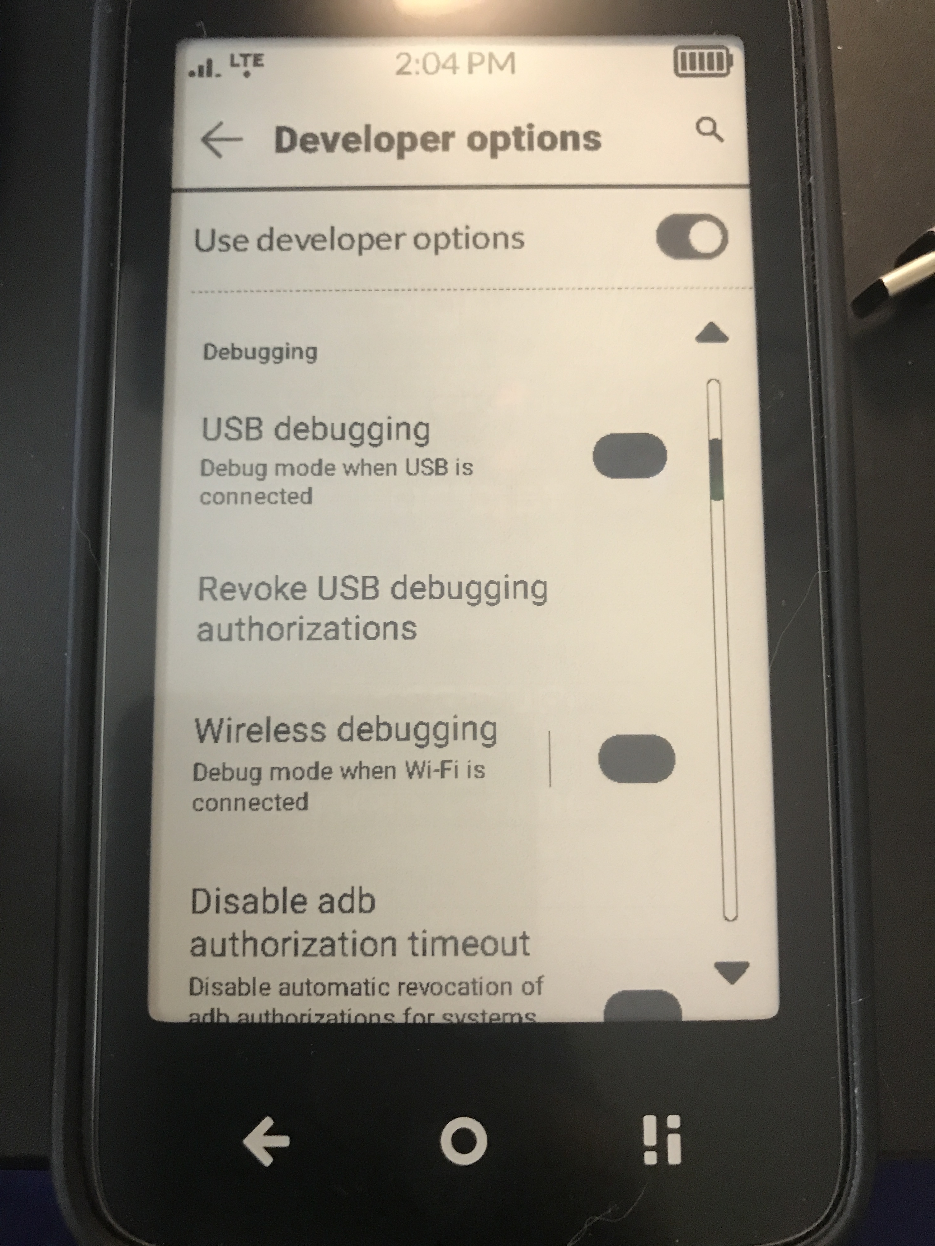I don’t own a mac or PC, so I’d been using the iOS app “Bugjaeger” to sideload apps and manage my Kompakt from my ipad. Since the last update, wireless debugging has been locked, so I can’t sideload anything. Is there a way around this? This is a major issue for me, as I installed InkOS for the way it manages sideloaded app notifications on the same day that I updated the Mudita OS K, and since then, my battery life has been trash. Installing the InkOS launcher required disabling the native Mudita launcher via adb, so I can’t uninstall inkOS to determine the cause of the battery drain, because I can’t re-enable the native launcher. Does anyone have any suggestions for how I might fix this, or what might be happening? Under your developer options settings, are you able to turn on wireless debugging, running OS K 1.2.0?