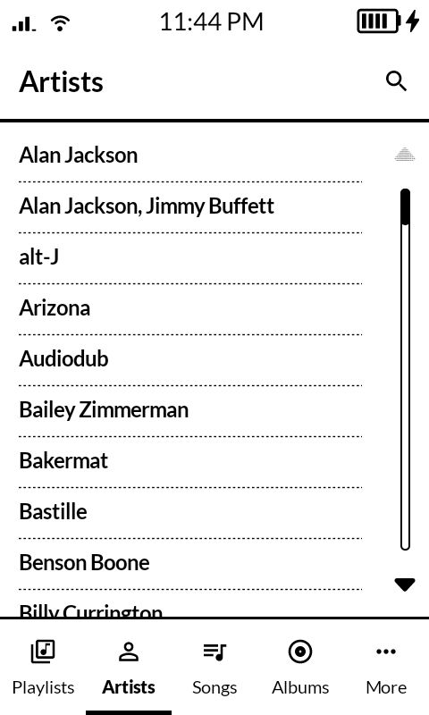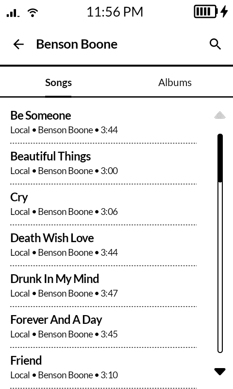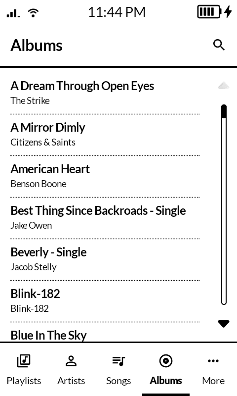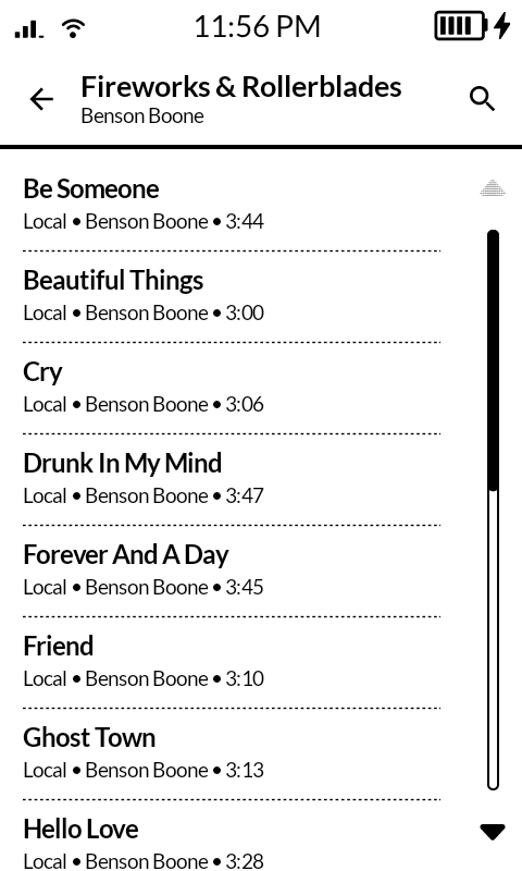 I’ve based the UI/UX on the Music app from the original iPod Touch. This might change slightly as features are brought on-board but I really do not want to stray too far from this initial look so I can keep some structure to my vision of workable, accessible music.